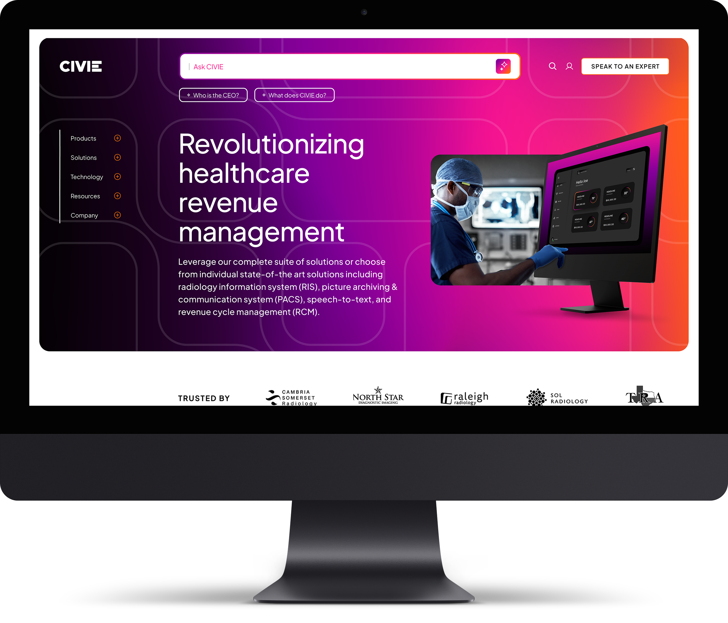 CIVIE reimagines radiology with AI-powered tools that make complex imaging simple, connected, and surprisingly human. We brought that same clarity and spark to their brand—clean visuals, sharp design, and a glow that says the future looks bright. I designed this site while employed as part of Clear Digial’s design team.